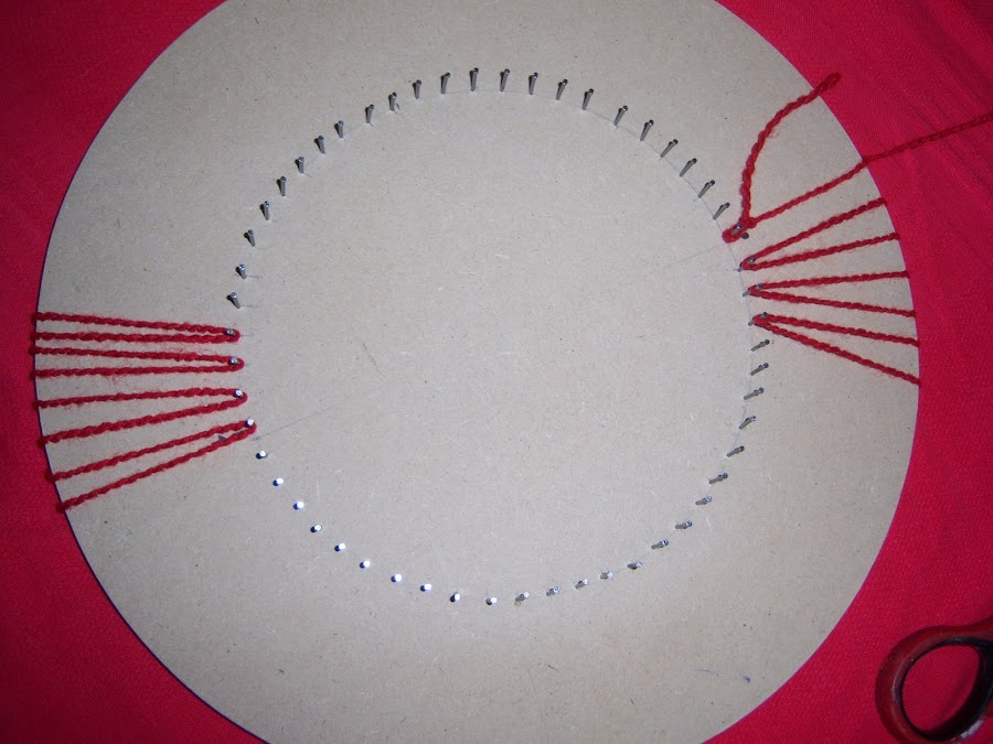 En principio comenzaremos tejiendo por la cara posterior del telar, es decir, la que no tiene clavos.