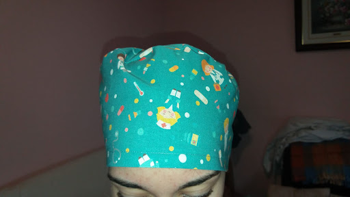 Por último, mira el precioso gorro de quirófano que ha cosido Kontxi Bello con nuestra telas. ¡¡Estamos super contentas!!