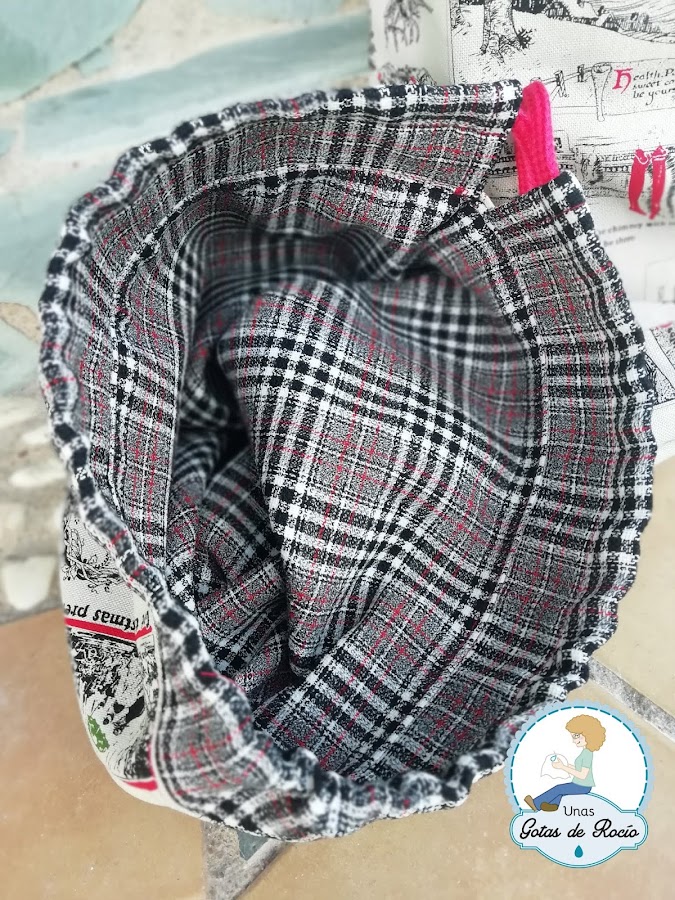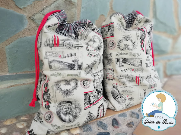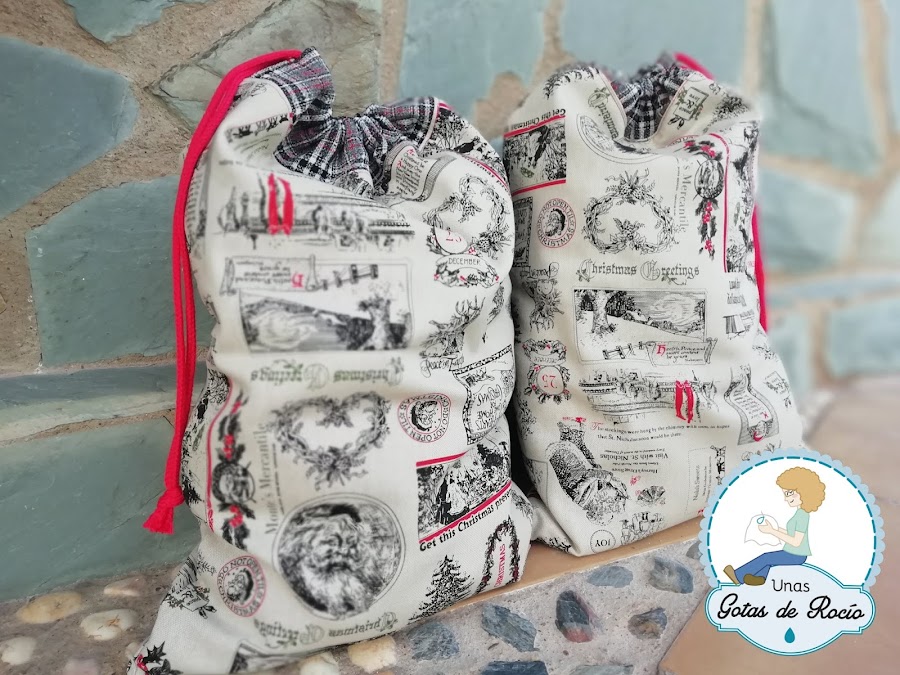 El destino que le he dado a la tela es un regalo para mis amigas Pilar y Bego, amantes de la Navidad. A cada una le he hecho un saco con la idea de que los Reyes Magos, o Papá Noel, no se olviden de ellas en su reparto de regalos. Aunque me cuentan que ya le han dado otro uso y guarda sobre la cama el pijama de cada una.