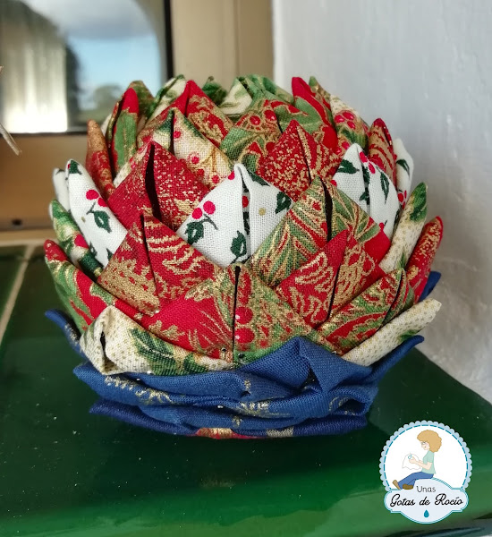 Otra de las cositas que no puede faltar en la Navidad es una bola de patchwork sin agujas.