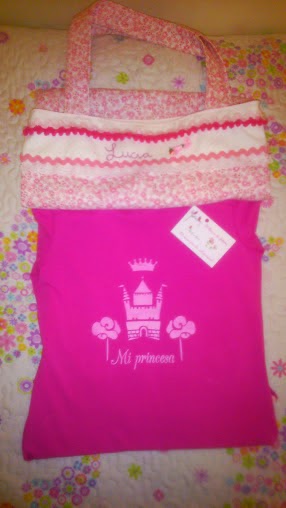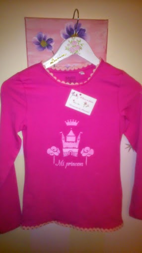 Como ya estaba metida en faena, decidí transformarle una camiseta que tenia sin estrenar , de las tantas que le compro básicas , para tuneo. Así que cogí la plantilla de mi amiga lucia, de momentos vintage que me llegó esta semana, y con pintura de tela rosa chicle me lié a pintar.