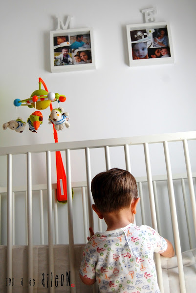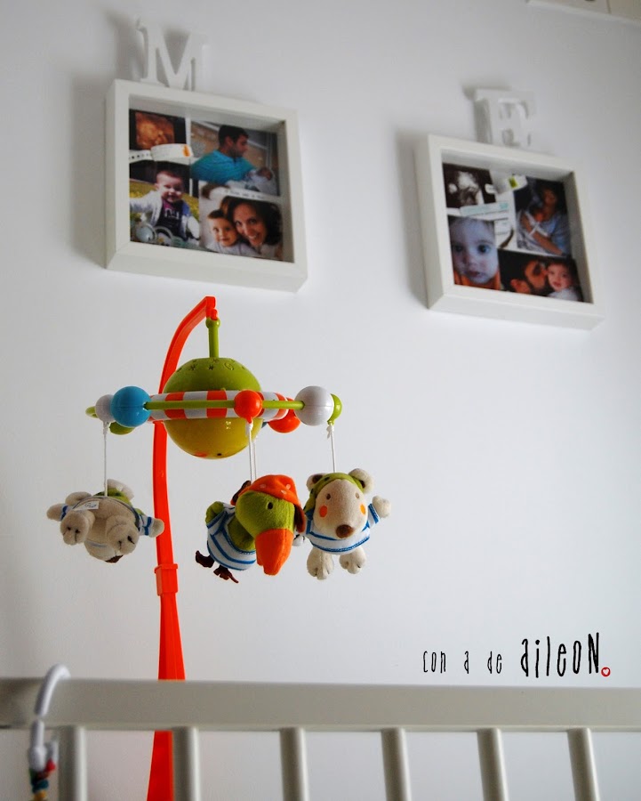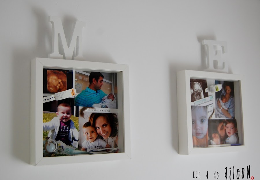 Una vez colgados ya puedes adornar con lo que quieras, yo, como siempre me voy a lo neutro, compré dos letras de madera blancas y las puse encima del marco, sin mas.