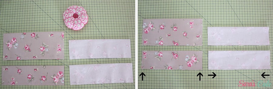 ? Cosemos una puntada recta y un margen de costura de 1/4" (0,63 cm) los lados más pequeños de cada bolsillo.
