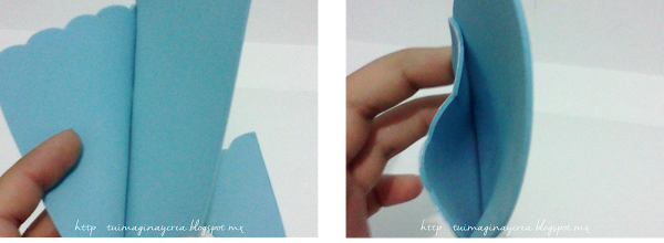 Vamos a poner pegamento solo por el borde y vamos pegando la pieza mas grande con la mas medianita, sin pegar la parte de arriba ya que por ahí entraran las tijeras.