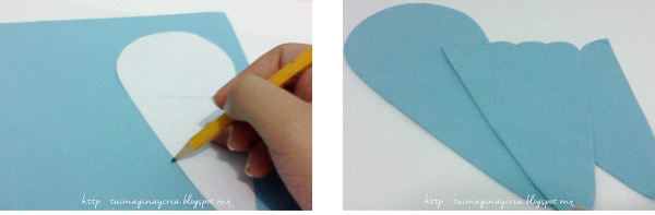 Asi que empezamos transfiriendo los moldes a la goma eva (foami) y cortamos las piezas.