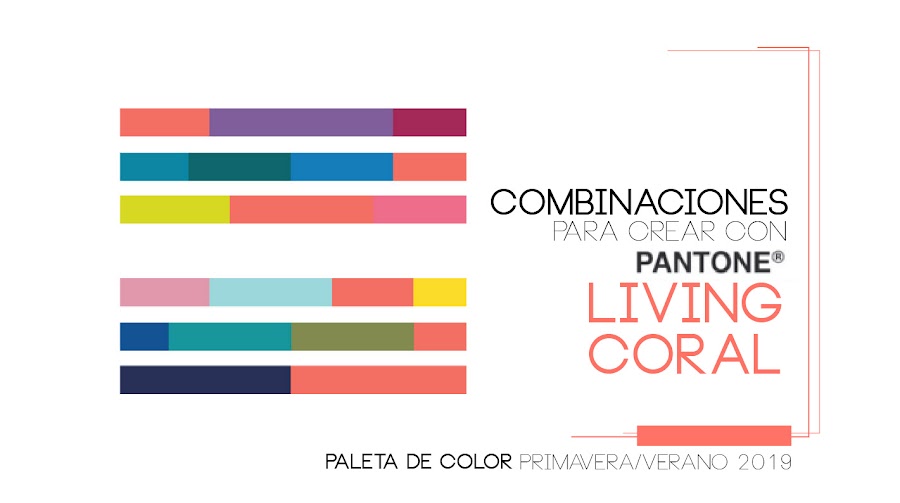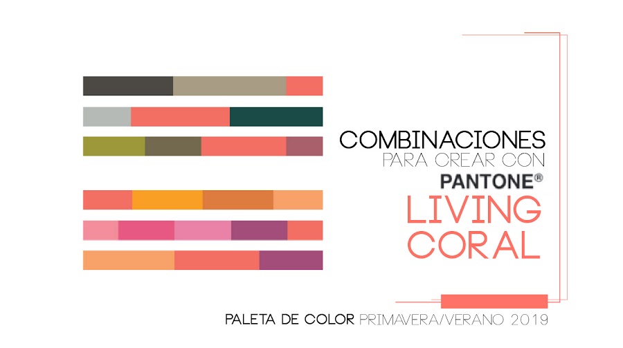 Estas paletas de colores son las que recomienda PANTONE para combinar el nuevo "Pantone Living Coral" en las próximas colecciones para esta primavera/ Verano 2019.