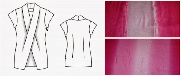 Es el modelo 105, en la revista indica hacerlo a lo ancho y no a lo largo de la tela para "jugar" con el dibujo de ésta. Yo voy a ir a mi aire (lo voy a hacer al hilo) y lo voy a intentarlo con esta tela degradada, que tiene los orillos más intensos de color que el centro. Mi idea es hacer una costura en el centro (el original no la lleva) y que sea más intensa en el delantero perdiendo color en la parte de atrás. Ya sé que suena un poco complicado, pero ¡¡voy a probarlo!!