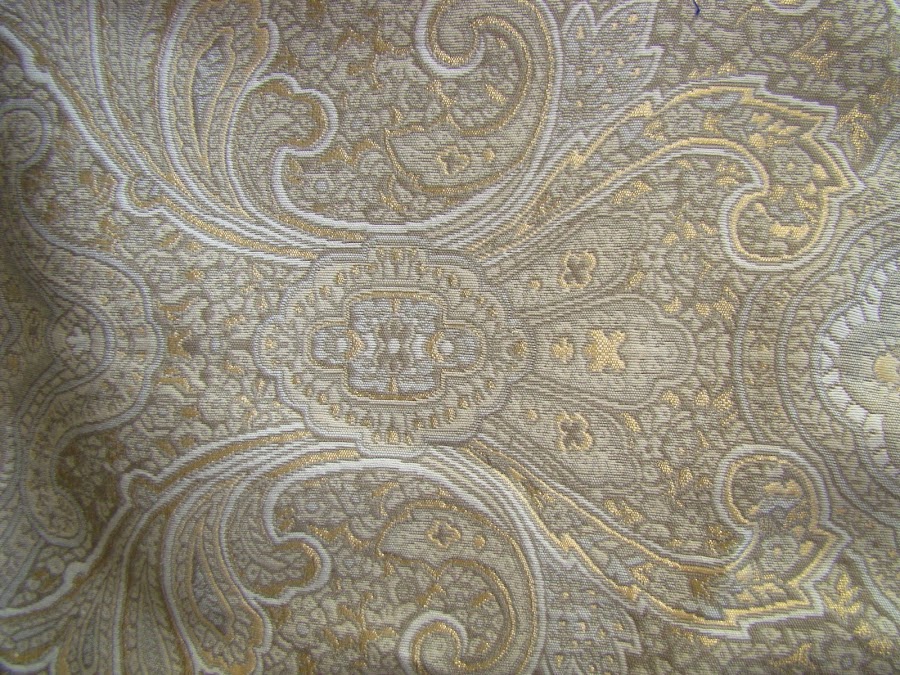 Tela de tapicería en grises, crudos y dorados para el chaleco.