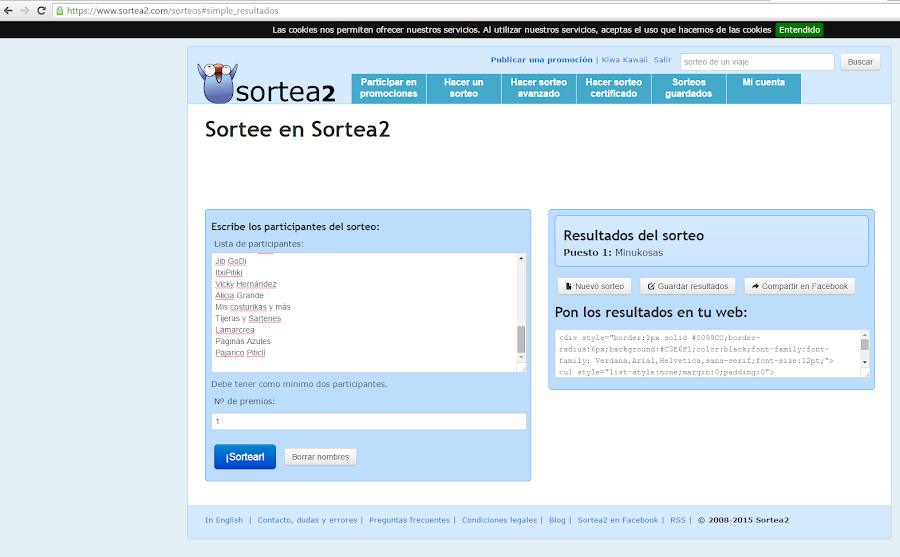 Ponte en contacto conmigo para darme tu dirección, (info.kiwakawaii@gmail.com), tienes tiempo hasta el próximo miércoles a las 24h, de lo contrario tendré que volver a realizar el sorteo!!