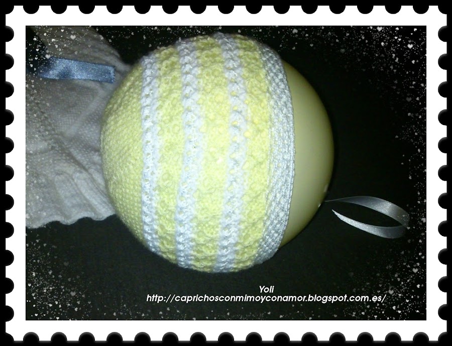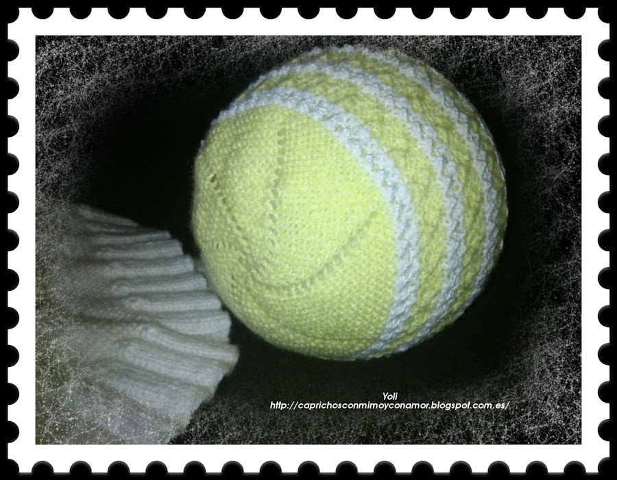 Y ahora un conjunto echo de sobras de lana y perlé, no dio para mas quedo chiquitín de primera primerísima postura pero la verdad es que cuando nacen todo les queda enorme, así que este modelo sería el ideal para esos primeros días y ademas amarillo!!!!!