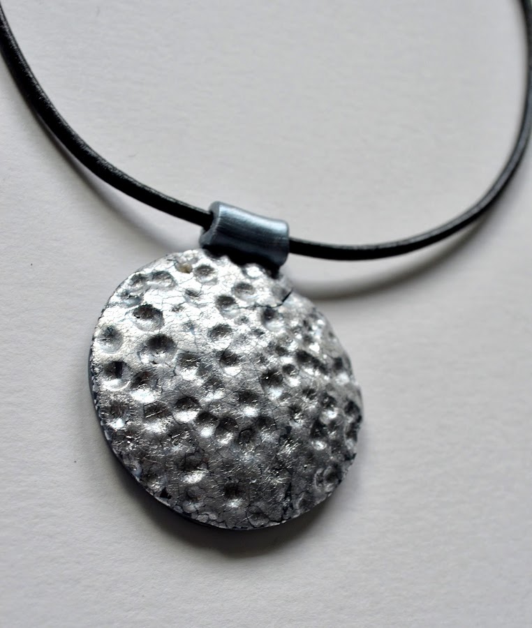 Como su nombre indica, la textura se obtiene golpeando el metal con un martillo, lo cual crea esas muescas irregulares. Pues bien, es muy fácil de imitar con arcilla polimérica, míralo en el vídeo: