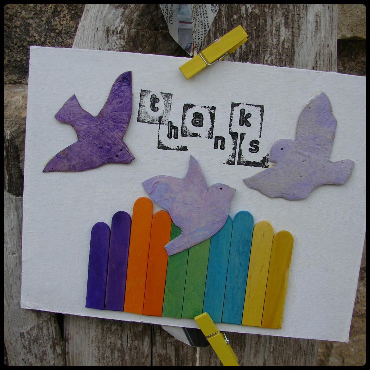 Y una postal hecha por Anna nuestra anfitriona,muy entrañable con pajaritos repartiendo las gracias