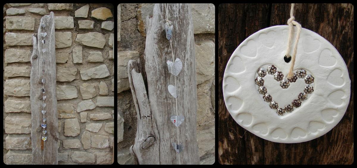 Y yo las tengo expuestas en una guirnalda?que hice con cuerda y corazones de papel de periódico y en la parte de abajo un detalle en pasta das con un molde.