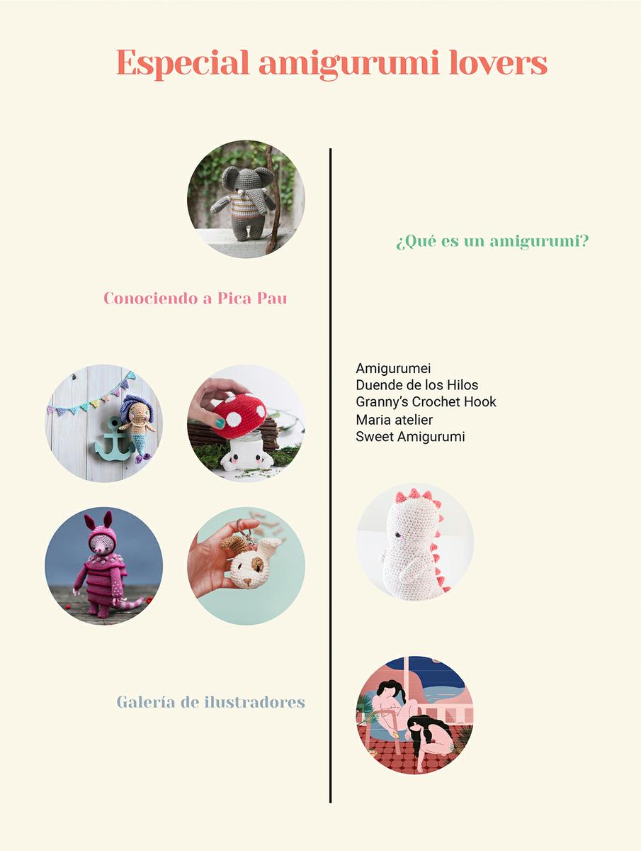 Cuenta con un especial amigurumis, con introducción de @gallimelmas y 6 patrones de dicha técnica.