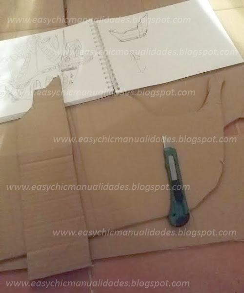 Boceto en mano, comencé dibujando las formas en el cartón grueso para después montarlas y crear la forma tridimensional.