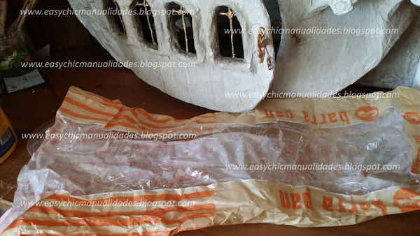 Como véis he uado el papel del envoltorio de las barras de pan para crear la tapicería de la silla. Todo se puede reciclar.