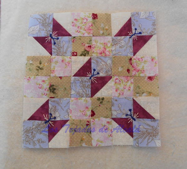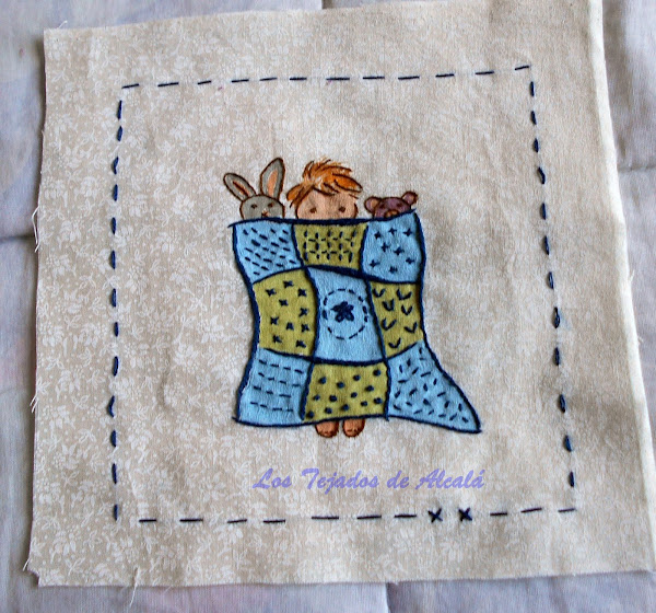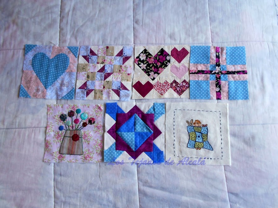 Y aquí están mis siete primeros bloques. Cada diseñador cuenta una pequeña historia de porque han hecho ese bloque. La del séptimo es muy entrañable. Me ha encantado hacer ese bloque que he pintado y luego bordado. Por cierto acabo de ver en la foto que se me ha olvidado terminar una oreja del conejo. Me voy corriendo a terminarlo que ya han subido el octavo.