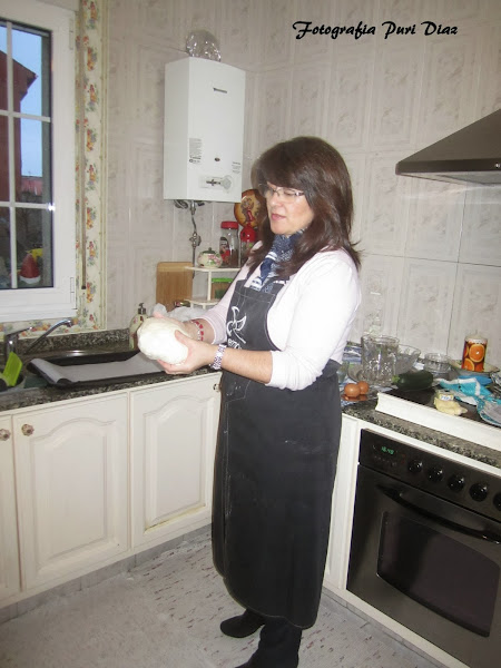 aqui Isabel haciendo la bolita con la masa del pan para meter en el horno: