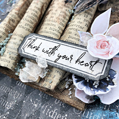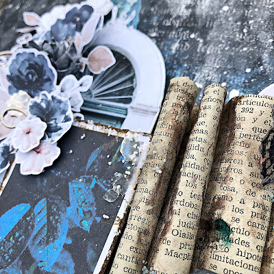 Use los recortes de dos páginas del Art Book vol 1 para crear mi composición alrededor de las hojas de libro.