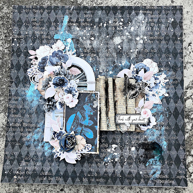 To finish off the LO use different products, Ayeeda Powder 3D, colors "Blue Light", "Gray Light" and "Pearls".