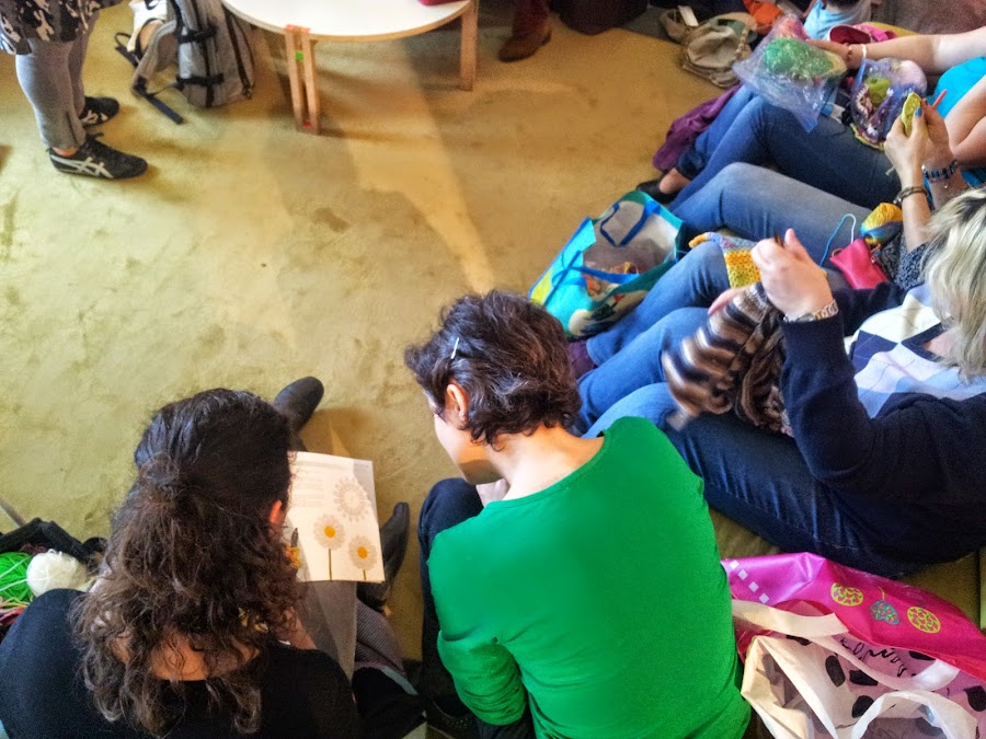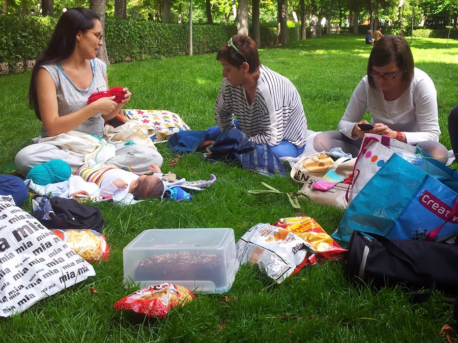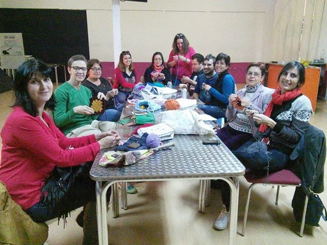 Tejiendo Carabanchel y Tejiendo Móstoles, con Lorena y Gema como cabezas visibles, mujeres estupendas que me ha encantado conocer, organizan quedadas a las que os recomiendo que asistáis porque el ambiente es estupendo y las horas pasan volando. Que colaboran muy activamente, junto a Tejiendo Malasaña con la asociación IAIA, arriba podéis ver la foto.