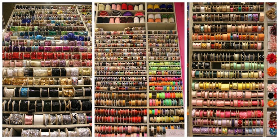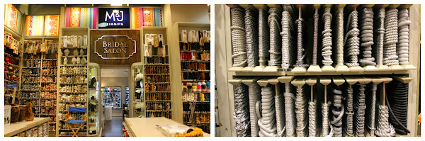 Qué podría decir de esta tienda que no se haya dicho en otros blogs, es simplemente el paraíso para cualquier fan de DIY y de la costura en general. Aquí encontraréis de todo: pasamanería de todos los estilos, plumas, apliques para coser o para planchar, lentejuelas, cadenas, hilos, cremalleras, tachuelas, botones, cristales swarovski, herramientas de costura... Tienen incluso un rincón para futuras novias y ofrecen clases de DIY. Es una tienda con un ambiente familiar; los empleados no podrían ser más simpáticos y serviciales, ofrecen asesoramiento en cualquier momento y casi todos hablan español. El sistema de esta tienda es como el de los supermercados, vas llenando el carrito o cesta de la compra con los productos que te interesan y cuando hayas acabado, un empleado te corta lo que necesitas y listo. Una vez hayas hecho tu compra te ofrecen la posibilidad de mandártelo todo a España, de esta manera no tienes que cargar con ello en la maleta y así dejar sitio para más cositas :). Desde luego les doy un 10 en servicio al cliente.