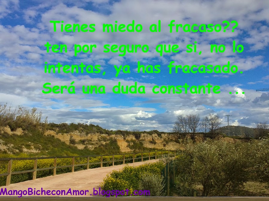 Esta reflexión de hoy es porque tenemos tanto miedo al fracaso?, por que no nos damos el lujo de equivocarnos y aprender de los errores?. Pues sí por miedo dejamos de hacer muchas cosas importantes en nuestras vidas, desperdiciamos momentos y oportunidades que no volverán.