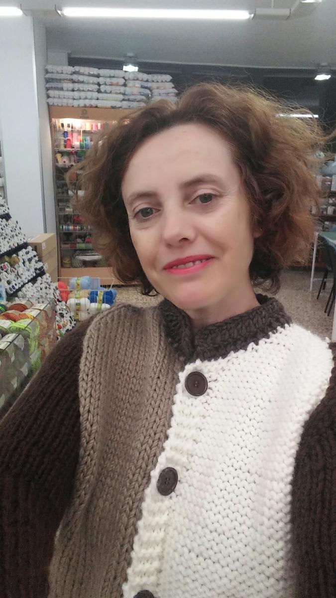 Hola amigas. Está lloviendo en toda España y hace fresquito así que nada mejor que tejer en casa una chaqueta calentita como ésta de lana.