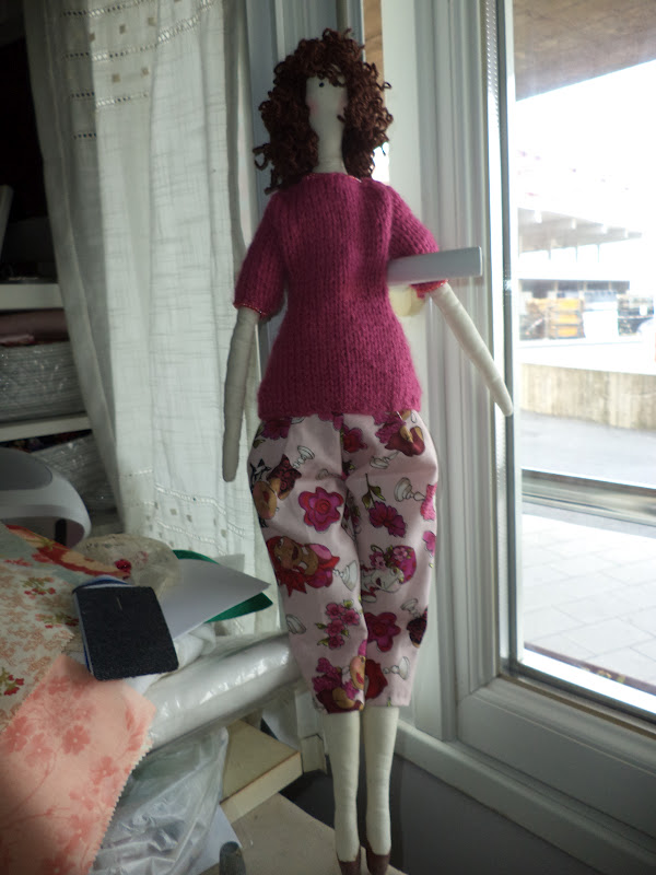Unas cuantas cuentas alrededor del cuello y de los puños del jersey le dan un aire mucho mas femenino. ¿y que me decis del pelo rizado? Creo que en próximas entregas nos va a explicar como conseguir esos pelos por muy muy poco dinero. Claro por algo es diseñadora ¡¡¡¡¡¡¡¡