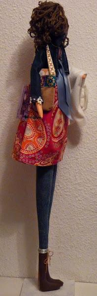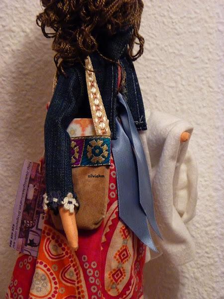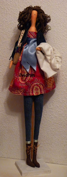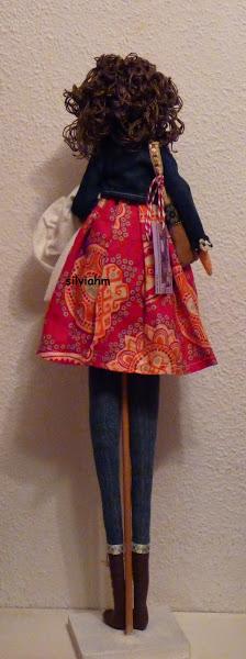 Un par de tildas que he hecho en estos días y que se van al Norte: Una estudiante, vestida con pantalón y cazadora vaquera, botas y bolso con libro y bata para el laboratorio. En esta ocasión, pelo largo.