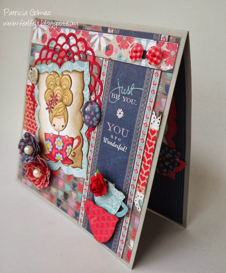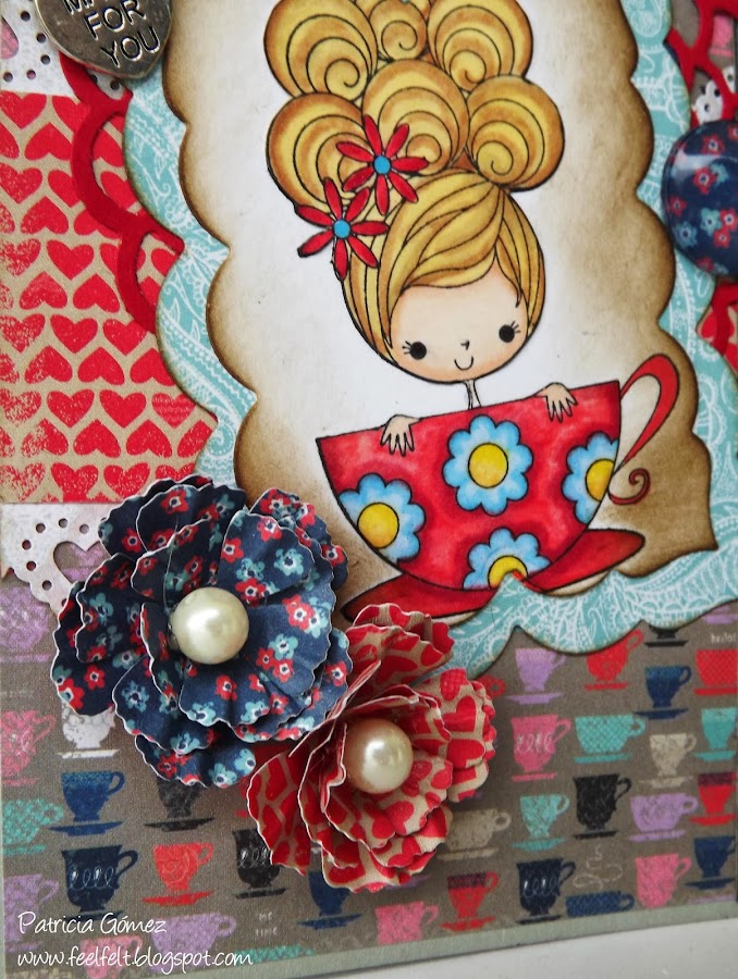 El sello principal de la niña en la taza es Tilly the Teacup, de Stamping Bella,