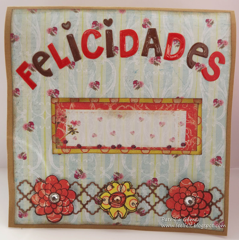 El texto Felicidades recortado con el troquel Quickutz Sketchbook Alphabet lleva capa de Glossy Accents (y aquí venía una foto que no tengo :( , la subiré cuando la recupere!! Ainss)