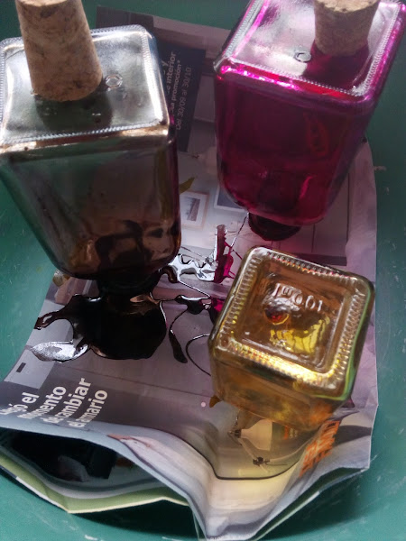 Después con cintas, lazos, encajes... etc, podemos decorar nuestras botellas.