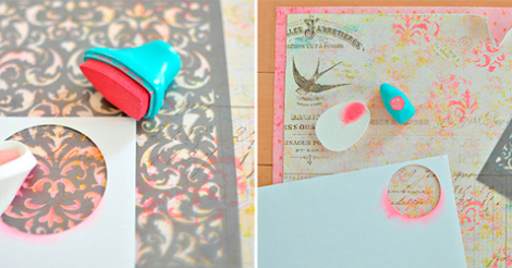 Sólo tenemos que aplicar la tinta de forma directa sobre la superficie y antes de que se seque, difuminar con una esponjita o con un blending tool.