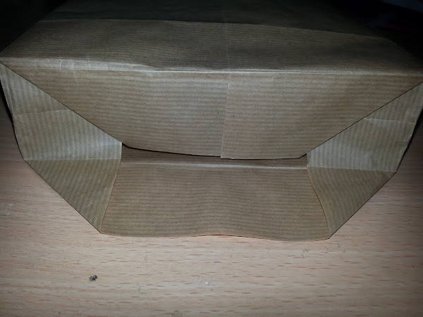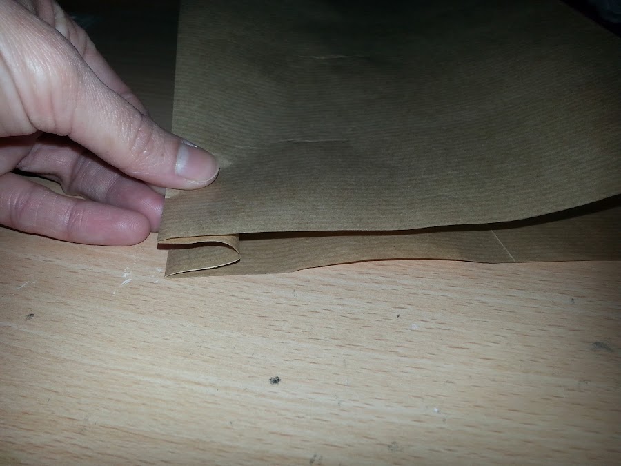 Y lo doblamos en tres partes, dejando todos los bordes el papel lo más recto posible, y dejando una pestaña en uno de los lados para poder pegarlo después.
