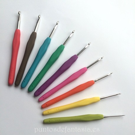 Conjunto de agujas ergonómicas compuesto por 9 agujas de ganchillo de tamaños: 2.0mm, 2.5mm, 3.0mm, 3.5mm, 4.0mm, 4.5mm, 5.0mm, 5.5mm, 6.0mm.