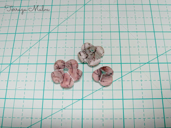 Para formar las capas de la flor han de pegarse en cada troquelado los dos pétalos que están separados, uno encima del otro.