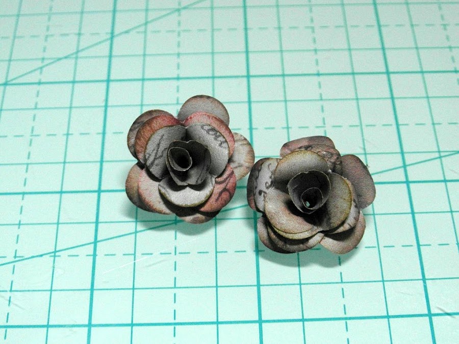 Se obtendrán flores muy distintas dependiendo del papel que se utilice para troquelar. Puede ser estampado como el mío, en colores lisos, combinando varios colores o en blanco. Los efectos que se pueden aplicar también variarán mucho el aspecto final, pues pueden tintarse los bordes o no, puede aplicarse purpurina, gel o cualquier otro elemento que se os ocurra.