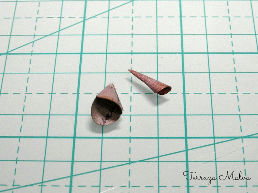 Los pétalos sueltos que quedaron también han de pegarse dando una forma cónica y uniendo sus bordes.