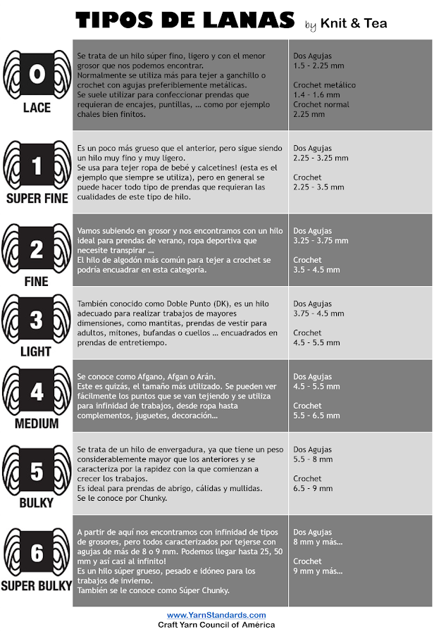 Este organismo es el que propone el Sistema Estándar de Peso del Hilo, o lo que es lo mismo, Standard Yarn Weight System.