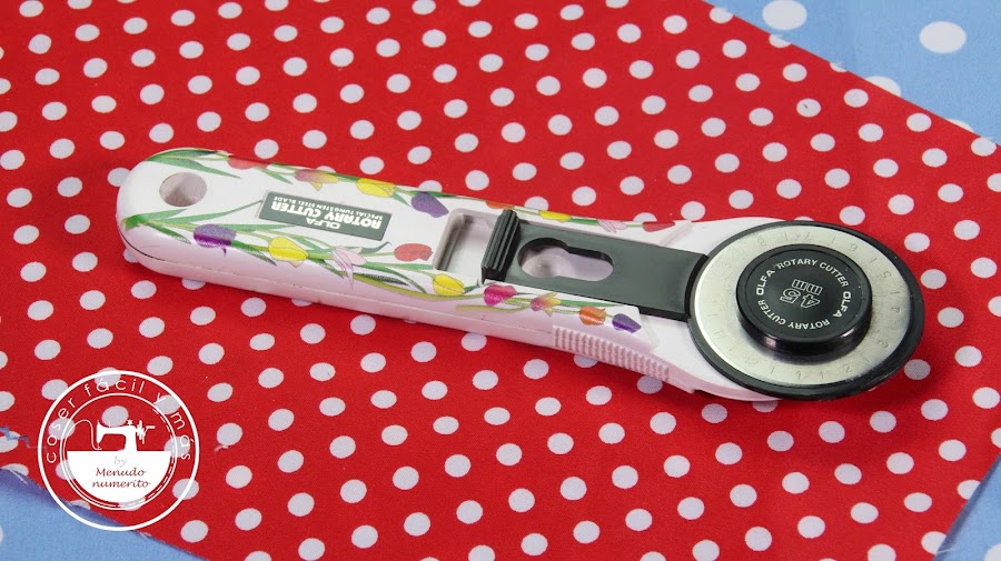 El cutter rotatorio no es, evidentemente de la familia de las tijeras, pero he querido incluirlo en este post como utensilio de corte que uso en mi taller ya que me preguntáis mucho sobre él. Es imprescindible en labores de patchwork por su precisión al cortar y lo cómodo que resulta de usar porque te ahorra mucho trabajo.