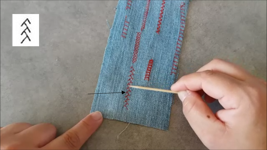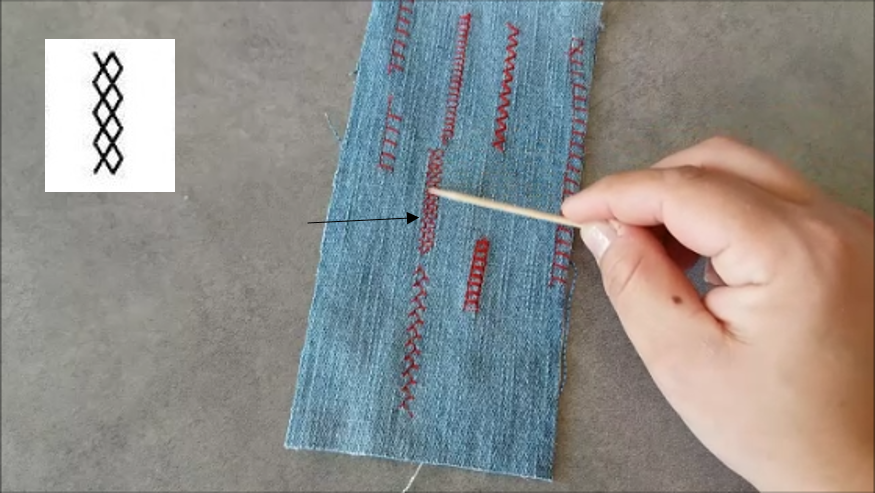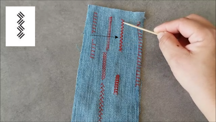Esta puntada de ric rac o triple zigzag es usada para decorar mangas, escotes, dobladillos etc. pero sobre todo cuando queremos hacer un zigzag sencillo en telas elásticas.