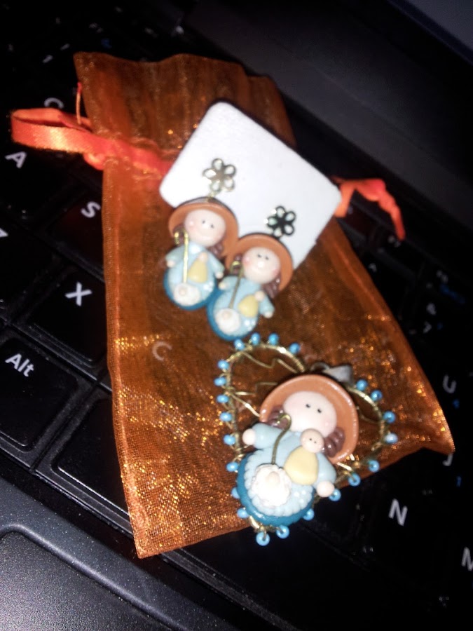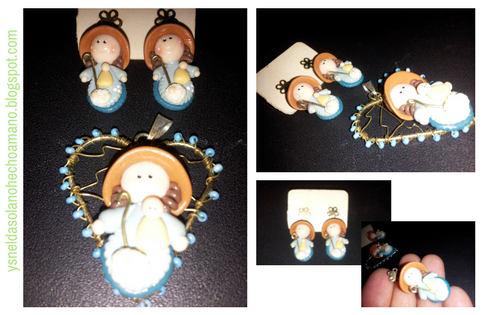Mi pequeño aporte son unas piecitas de bisutería. Son las virgencitas mas pequeñas que he realizado. Solo he hecho dos pares de estos zarcillos, uno de ellos lo deje para mi.