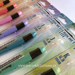 Ergonómicos con luz: son el último grito, para que no digas no tengo luz para coser. Son agujas de ganchillo de plástico que disponen de un led que ilumina el ganchillo para facilitar tejer tanto con hilos oscuros como con poca iluminación.