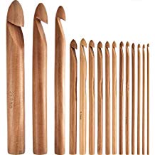 Bambú: suelen ser piezas muy agradables para tejer. No los encontrarás en pequeño tamaño ( o no serían recomentables por su fragilidad). Cuando la aguja está bien trabajada son muy suaves y deslizan la labor con bastante facilidad sin que se escurra. Es importante asegurarse de que la parte del gancho está bien rematada o podría enganchar la labor cuando tejamos. Cuando me inicié en bambú hice un pedido a china y me vino un pack que, a fecha de hoy aun conservoy he hecho muchas cositas con ellos.