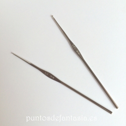 Acero: normalmente se encuentran en números pequeños por lo que se utilizan para elaborar piezas de pequeño tamaño o que requieran gran detalle. Suelen ser ganchos más pesados que los equivalentes en número hechos de aluminio y, si los utilizas mucho, pueden perder el brillo por la parte de la empuñadura y verse “feos”.