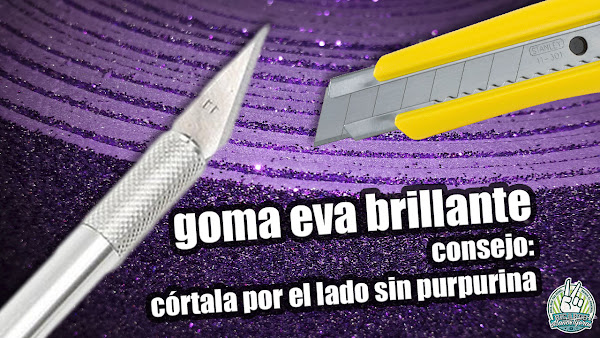 2. Para completar lo relacionado con la goma eva brillante te aconsejo que al realizar un corte sobre ésta sitúes la cara con purpurina boca abajo y realices el corte sobre el lado liso, de lo contrario verás como ocurre lo explicado en el anterior punto.