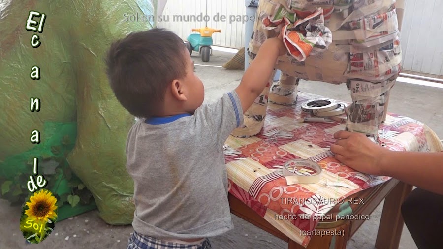 Fuimos rellenando con bolas de periódico arrugadas y sujetando con cinta de enmascarar, tal y como lo muestra mi nieto menor