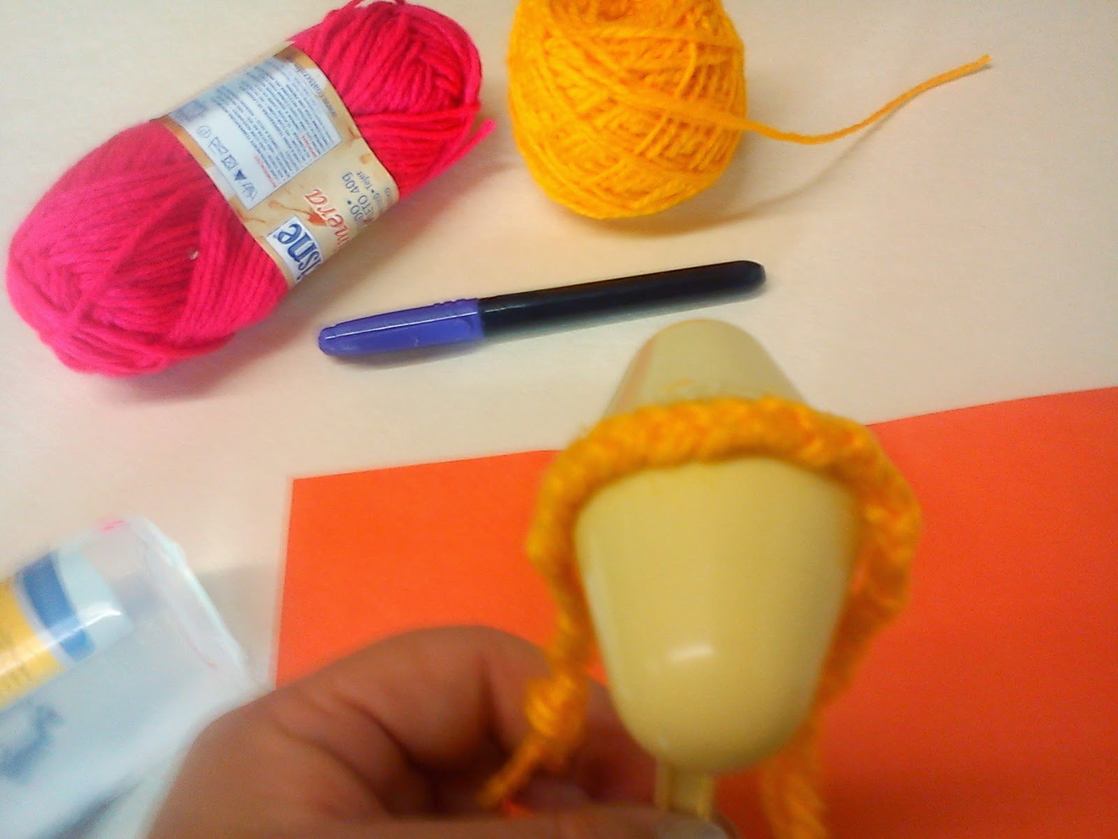 Se da unas 4 vueltas de lana al rededor de los dedos,para formar los flecos.