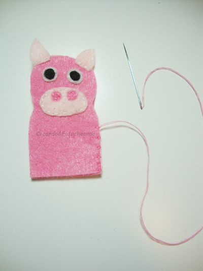 Unimos las dos partes con punto Festón y listo nuestro cerdito guapo.